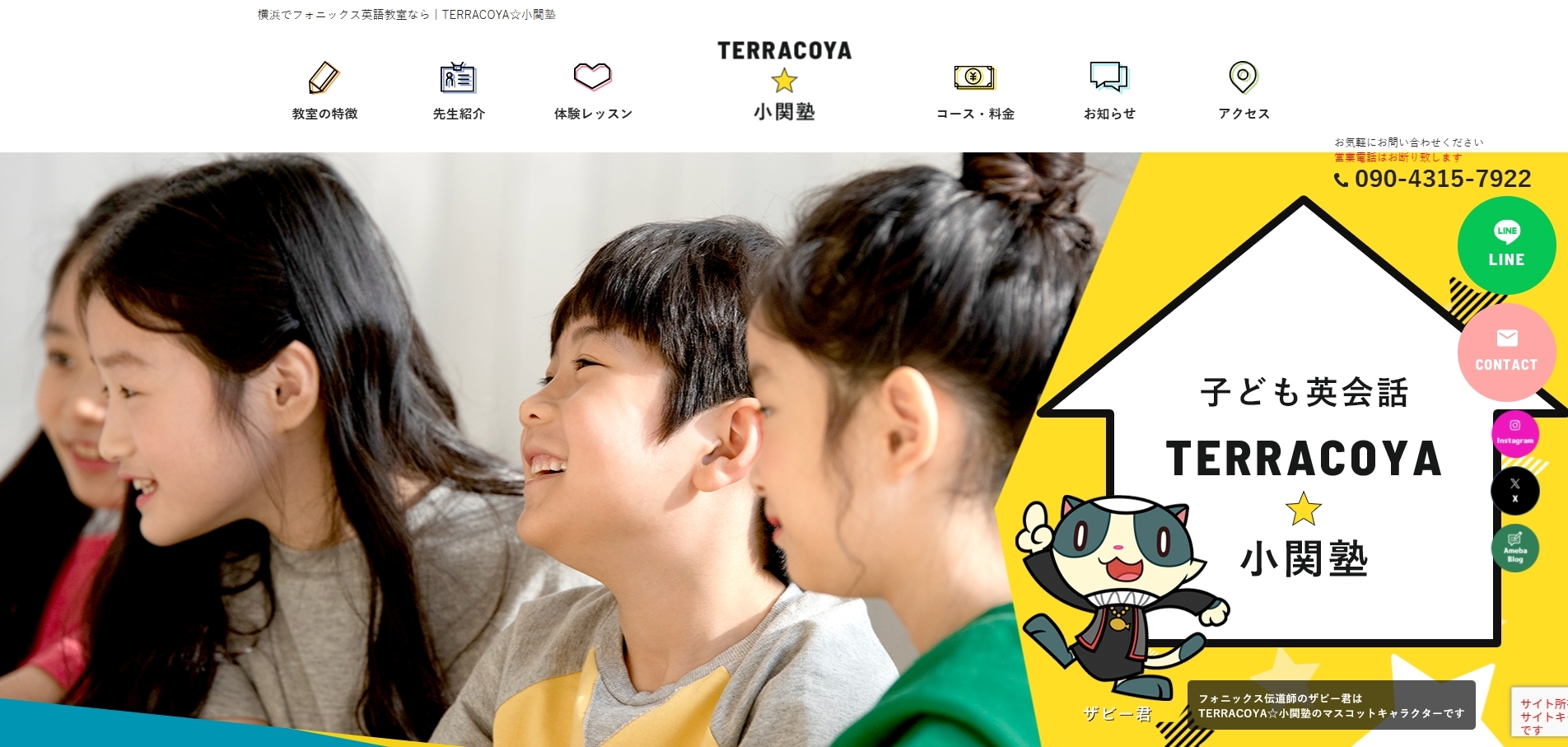 ▲塾長ご令嬢が考案されたキャラクター「ザビー君」をメインビジュアルとして採用し制作したHP。